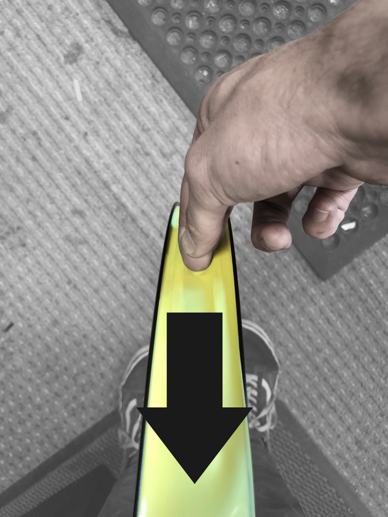 Use your fingernail to press down the remaining tape, sticking it down firmly. Make sure it stays inline with the bottom layer of tape, and doesn’t ride up the edge of the rim, or become unstuck in the central channel (see picture).